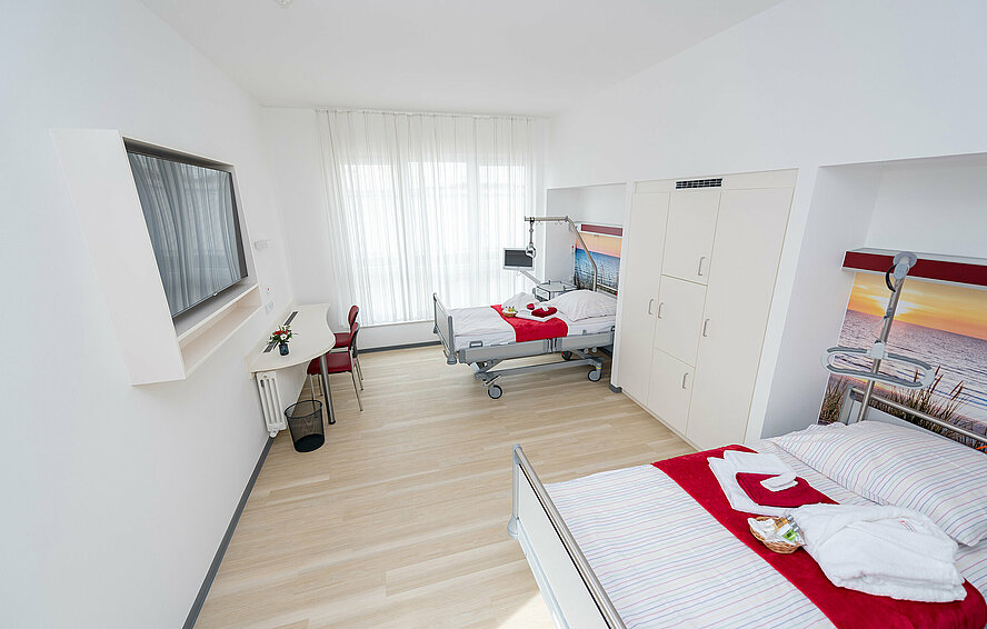 Die komfortablen Behandlungs- und Patientenzimmer sind mit moderner Medizintechnik ausgestattet. Die Caféteria mit ihren täglich frisch zubereiteten Köstlichkeiten lädt zum Verweilen ein - so ist die DRK Kamillus Klinik im Grünen nach wie vor ein Juwel.