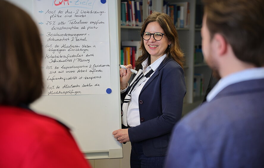 Die Theorie-Praxis-Vernetzung findet durch regelmäßigen Austausch zwischen dem Bildungszentrum und den praktischen Einsatzfeldern statt.