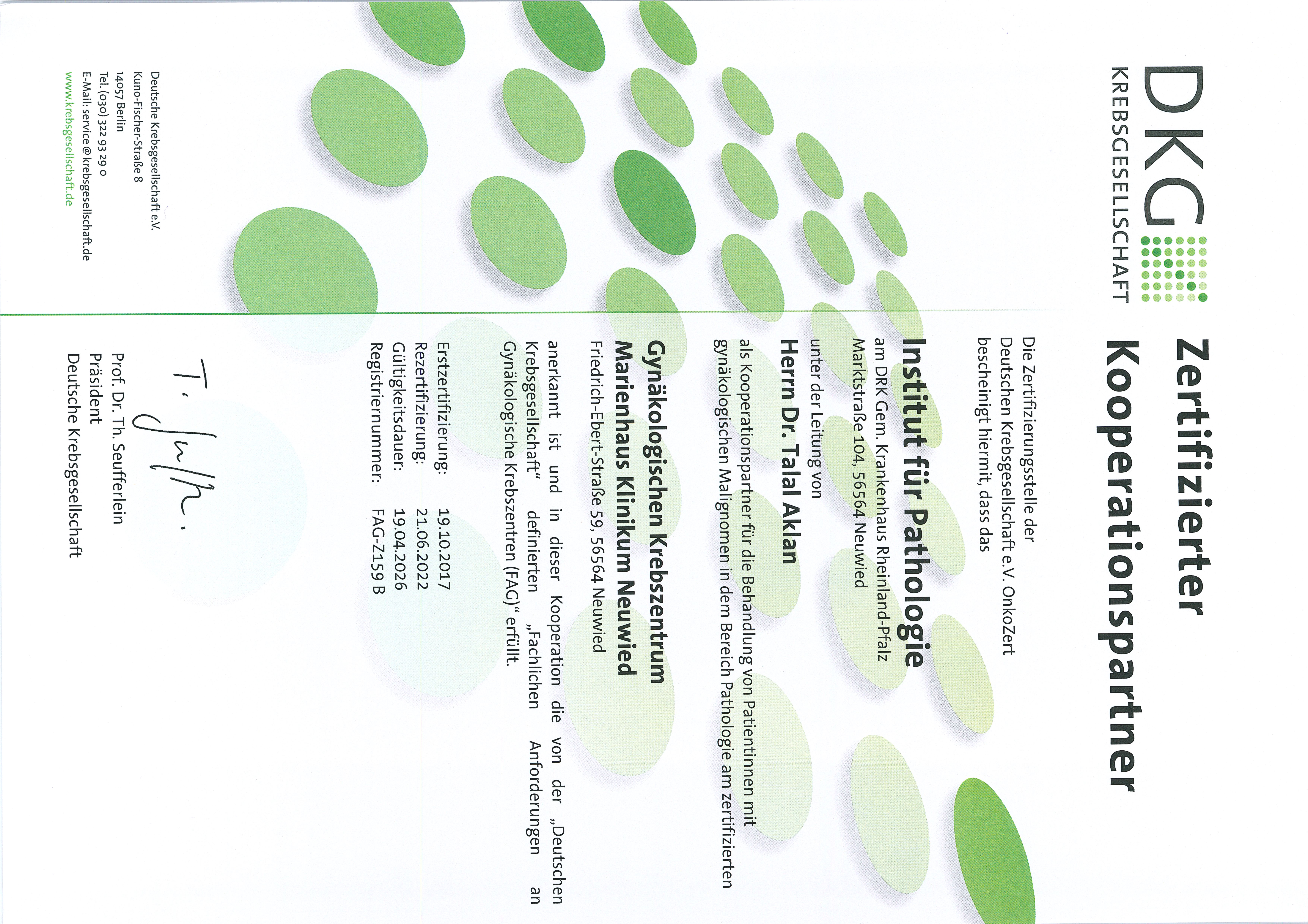DKG Zertifizierter Kooperationspartner Gynäkologisches Krebszentrum Marienhaus Klinikum Neuwied